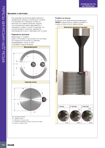 к ее поломке или к появлению отметин на           ISCAR (в процентах) для глубины проходов на