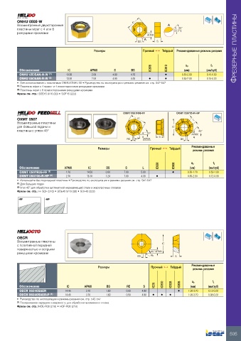 • Для использования с пластинами ONMU/ONHU 05 • Руководство по эксплуатации и режимы резания см. стр. 542-547
