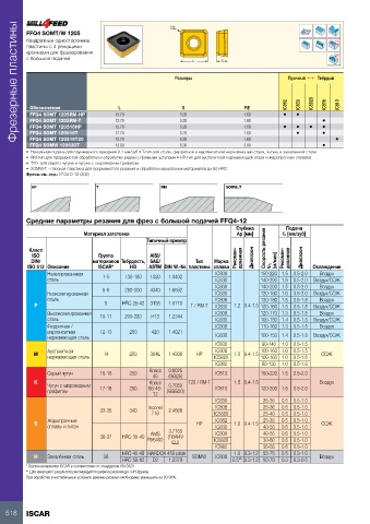 Средние параметры резания для фрез с большой подачей FFQ4-12