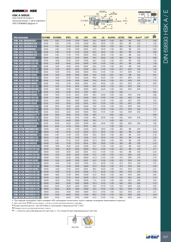 Обозначение DCONMS DCONWS BTED BD LPR LBX LB ADJRGA LSCWS THID Ключ (2) CDI (3) kg DIN 69893 HSK A / E
