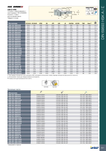 Обозначение DCONMS DCONWS BTED BD LPR LBX LB ADJRGA LSCWS THID Ключ (1) kg DIN 69893 HSK A / E